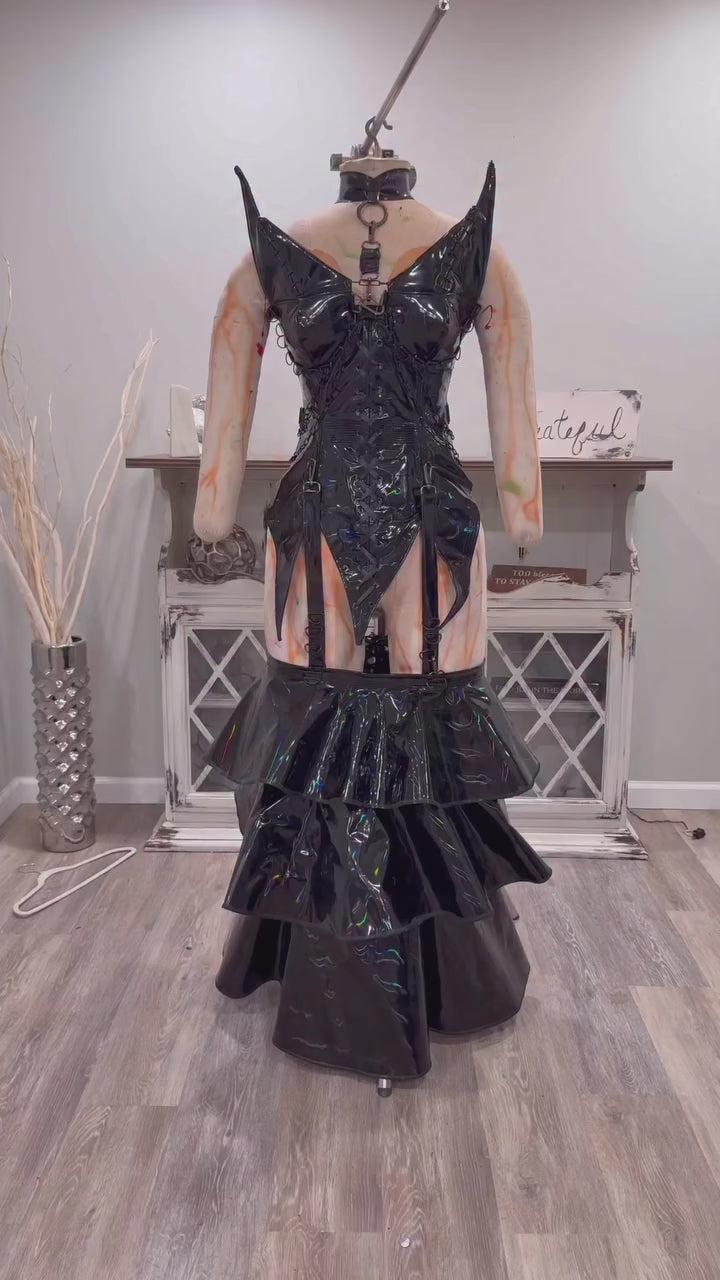 Faux holographic leather bodice and adjustable mermaid skirt combo